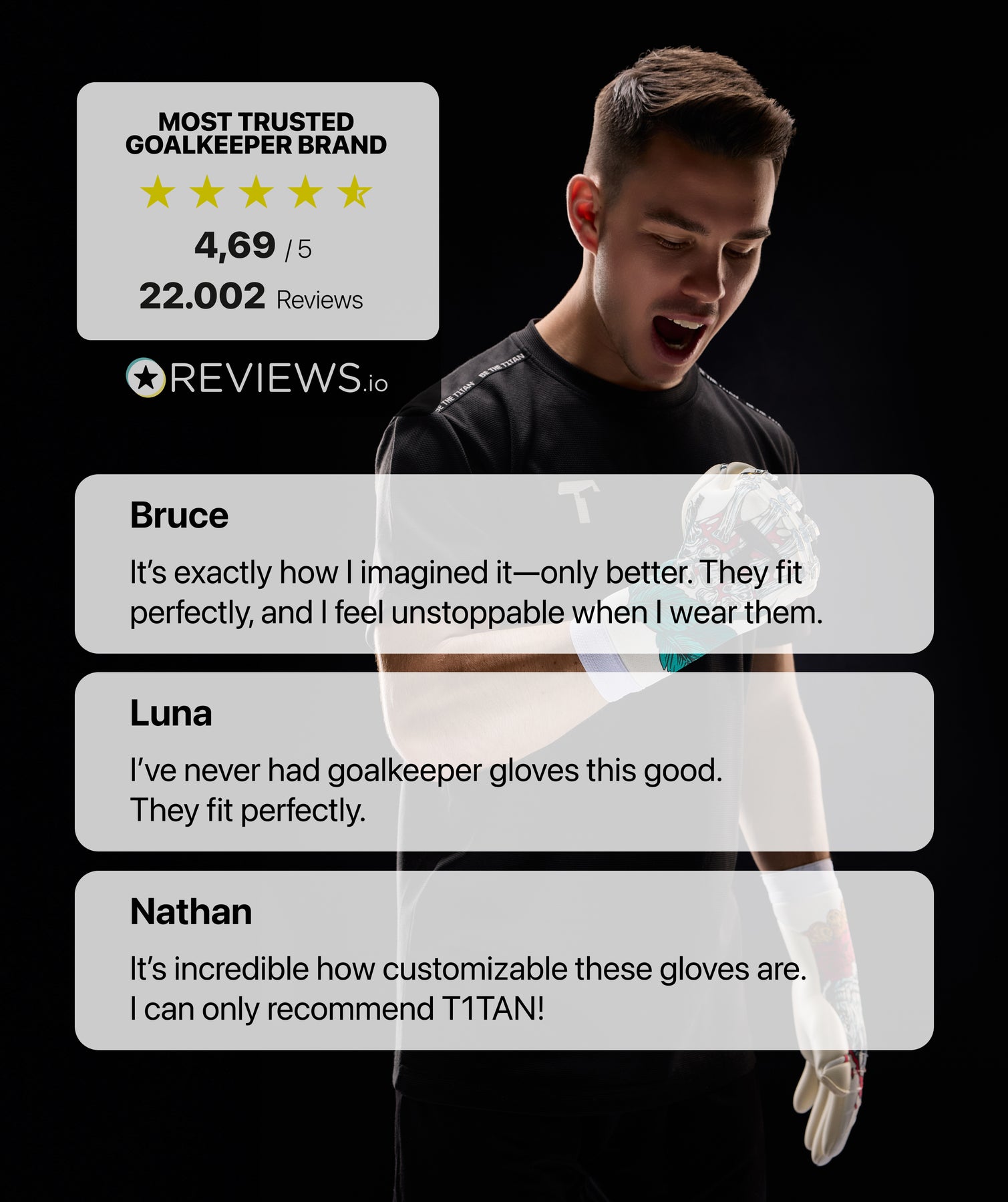 Professionals normally only use our goalkeeping gloves for a few weeks, since the demands at this level are extremely high. At T1TAN, you get the same quality as the professionals do.