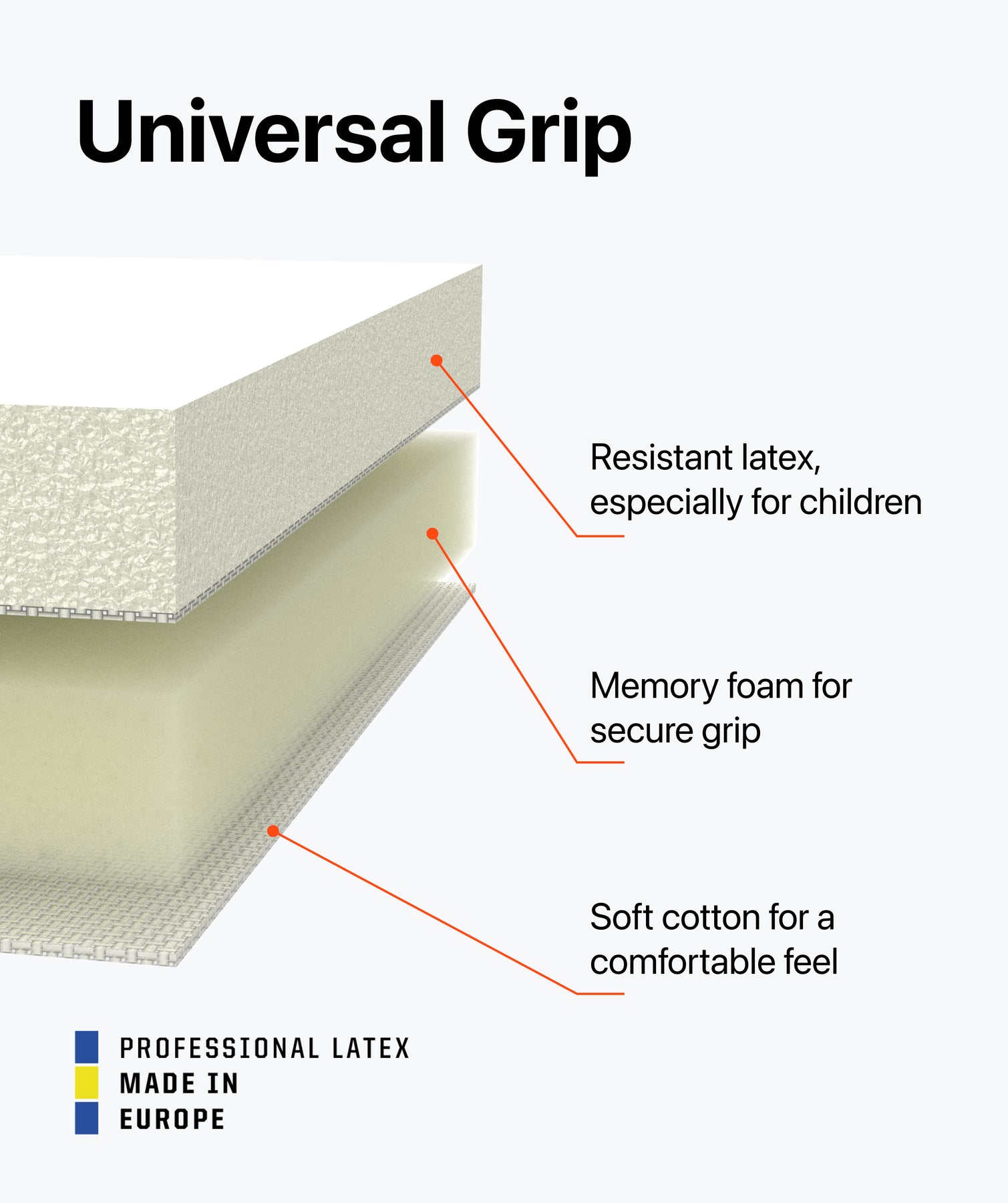Makes your kid a power in goal: the special 3mm Universal Grip ensures a reliable grip. The high-quality adhesive foam is especially abrasion-resistant and durable. -